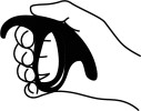 2) Slack the Rope: This shows the correct way to slack the rope, for example when the climber needs more freedom for climbing. The thumb of the hand lifts the belay lever upwards and the other hand pulls the rope towards the climber (white arrow). In this way, the climber can get the necessary rope for the next move.