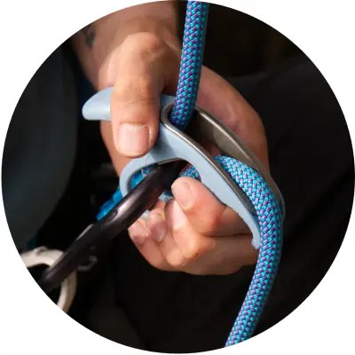 The BOW belay device is made from highly durable materials, including an abrasion-resistant metal insert, ensuring long life and reliability with every belay. The plastic body is built to handle tough conditions – it can withstand hard impacts, drops onto sharp surfaces, and even the full weight of a loaded gear pack without damage. As long as it’s not exposed to extreme force, such as a hammer blow, the BOW remains reliable and durable.